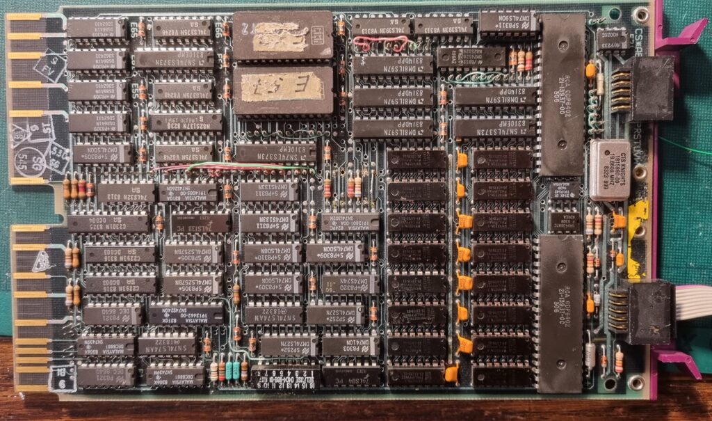 Tai silpnesio modelio PDP-11/23 procesoriaus plokštė su F-11 čipsetu. 18 bitų adresacija, be MMU (vadinasi mažai RAM), be FPU. Bet ALU dalis lygtai yra. Buvo baisi, išploviau su muilu, distiliuotu vandeniu ir izopropilo alkoholiu.