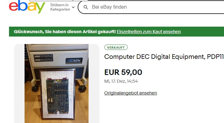 Ko pasekoje supsichavau ir nusipirkai eBay DC J11 (PDP 11/72) procesoriaus plokštę (tipo veikiančia) su būtent tokiu pat CPU. (minus 155 pinigai) ir kiek vėliau Q-Bus atminties plokštę (minus 75 pinigai)… Dar negavau.