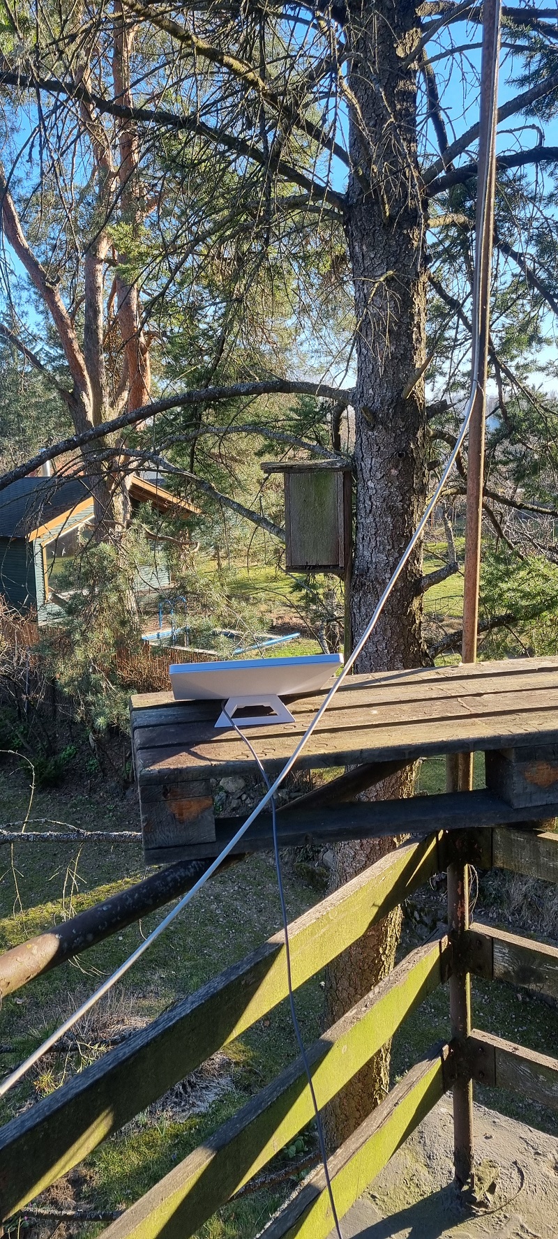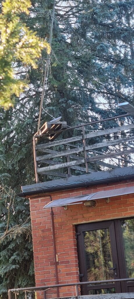 O poto pasakė, kad aš vis-dėlto turėčiau nusipjauti tą netikėtai išdygusi medį, nes jis vis-dėlto užstoja gana daug pietinio dangaus. Matyt reikės padaryti kokį stacionarų kotą ir pakabinti prietaisą kiek toliau nuo medžio.
