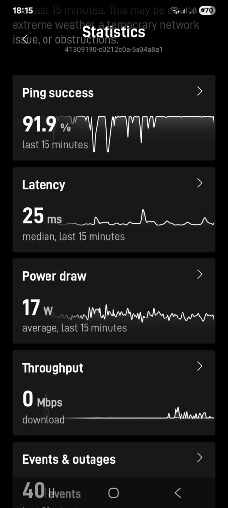 Prietaiso atsiuntimas kainavo 21€, lygtai buvo parašyta, kad kažkada atskaičiuos nuo mokėjimų. Kol kas neatskaičiavo. Pristatė per nepilną savaitę- atvežė kurjeris į darbą. Instaliacija- reikia instaliuotis programėlę, kad sujungti prietaisą su savo asmenim (gal galima padaryti tą patį ir be programėlės, per starlinko puslapius). Toliau pajungti maitinimo laidą- ten gal 15 metrų duoda. Ir pastatyti kur nors atviroje vietoje. Po kažkiek laiko, programėlė paprašo pasukti starlinką, kad optimizuoti jo padėti. Aišku buvo firmwarės updeitas, teko laukti. Kažkiek laiko aktyvavosi. Per tą laiką bandžiau išgelbėti kamanę, ir ta gyvulė įgėlė man į pirštą. Po gelbėjimo operacijos viskas pradėjo veikti, tai paleidau youtubę ir pradėjau kalti lenteles prie sienos. Pora kartų buvo ryšio sutrikimas, bet programėlė rodė, kad daro kažkokius updeitus.